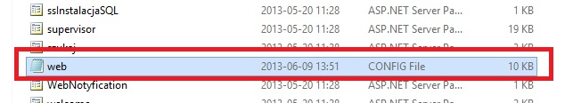 W folderze który skopiowaliśmy do miejsca C:\inetpub\wwroot, znajduje się plik o nazwie web. Otwieramy go za pomocą notatnika.