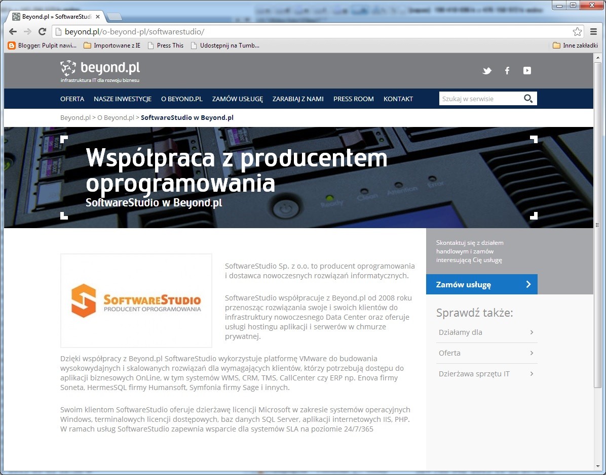 Potwierdzenie kompetencji Microsoft Silver Partner, testy weryfikacji aplikacji działajacych na platformie StudioSystem. Zdobyliśmy kompetencje: Silver Application Development oraz Silver Intelligent Systems. W przygotowaniu kompetencje Silver Application Integration oraz Silver Management and Virtualization. Zakup infrastruktury i uruchomienie nowej chmury w data center ATMAN w Warszawie na bazie VMware Virutal San.