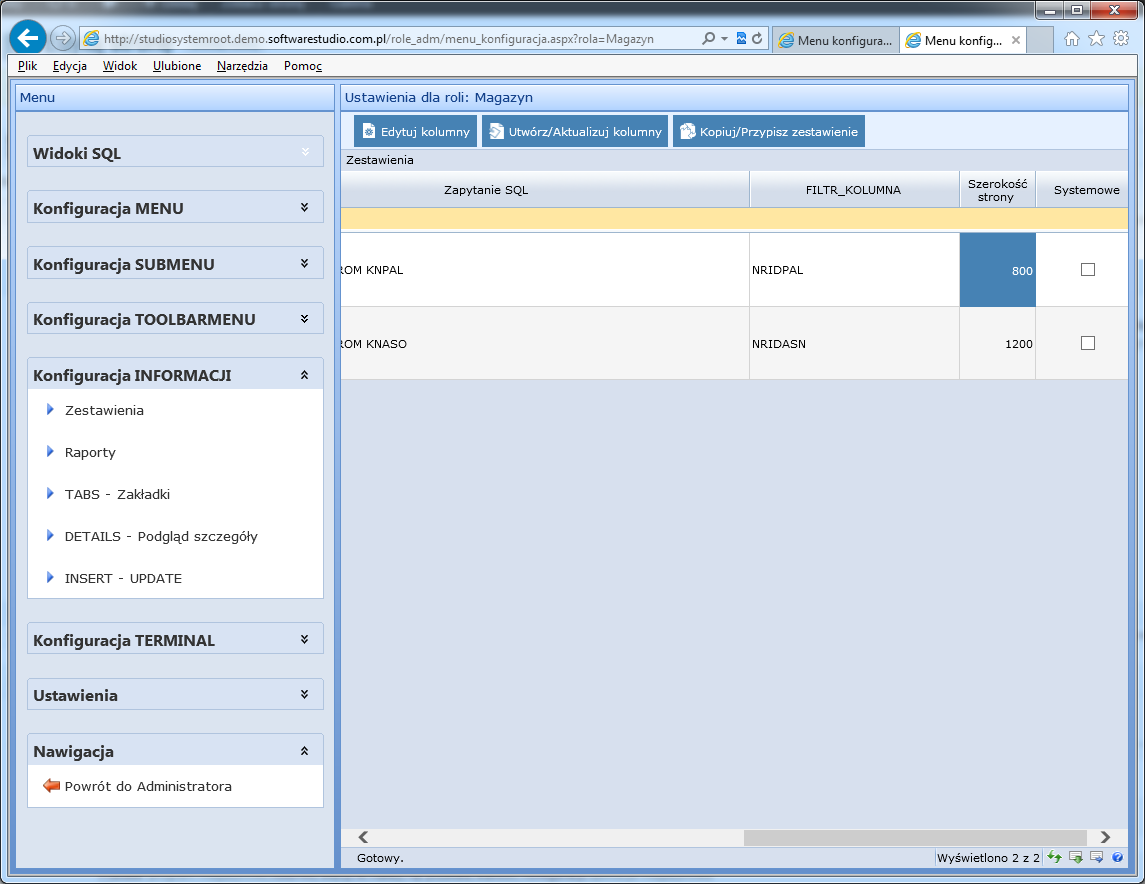 • ZAKŁADKA – kolumna wykorzystywana przy konfiguracji transakcji role_sys/y_insert_update.aspx
